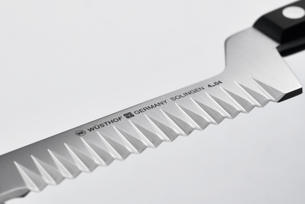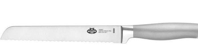 Coltello da pane classico quasi immancabile in ogni cucina,la specifica che lo distingue sono le dentature sechettate in entrambi i lati così che facendo avanti e indietro permettono di tagliare la crosta come la mollica in modo migliore con un taglio continuo